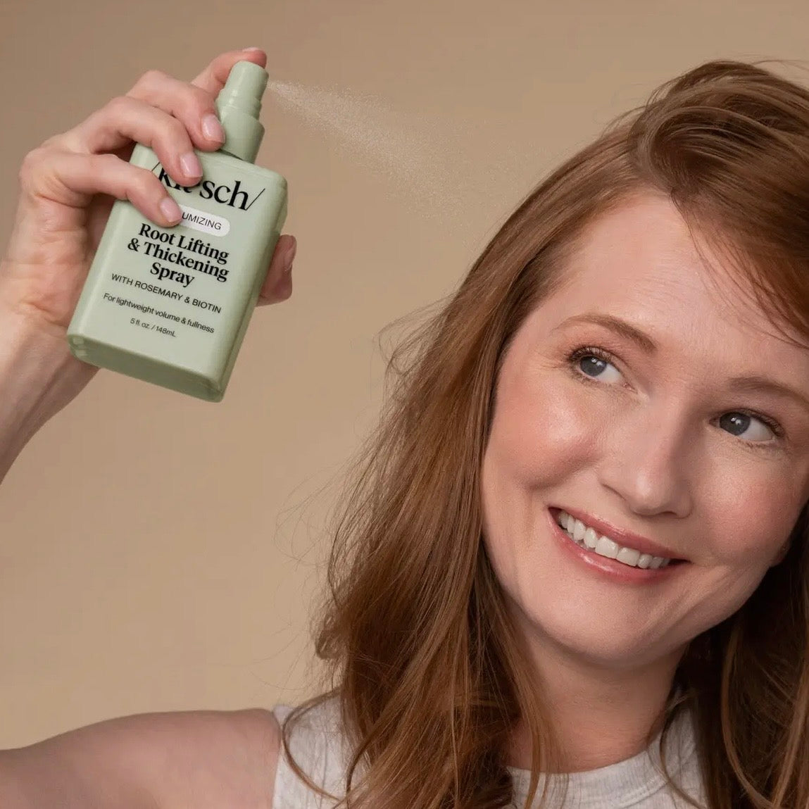- Spray product onto roots 2-3 times per section, massaging to evenly distribute.