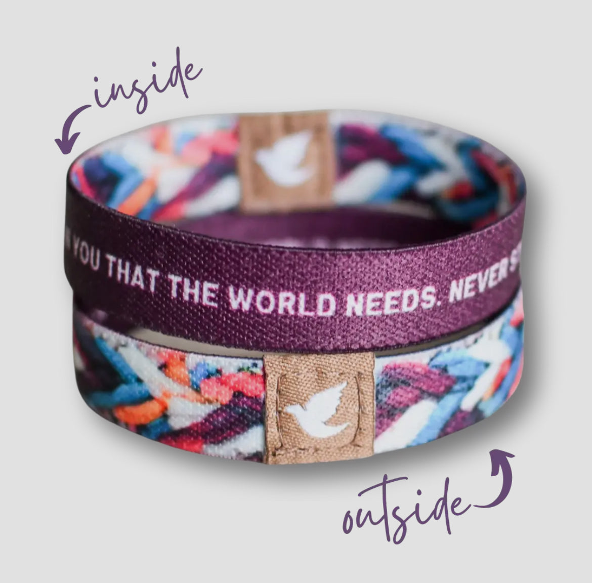 Stylish & soft Christian elastic bracelets make THE gift for yourself or someone special. Multiple bracelet colors and designs hide a reversible Biblical declaration inside. Available in Small (kids, teens, & petite wrists), Medium (women), and Large (men) sizes.