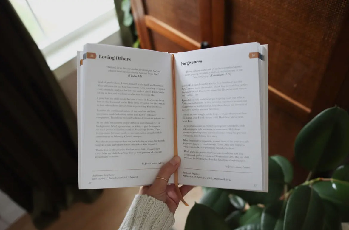 —a beautifully designed keepsake created to help families nurture faith together. This timeless volume from Truth + Light Co. pairs elegant design with deep spiritual purpose, guiding parents to pray God's Word over every part of their child's life.