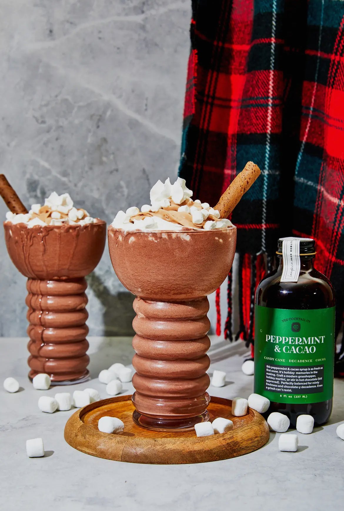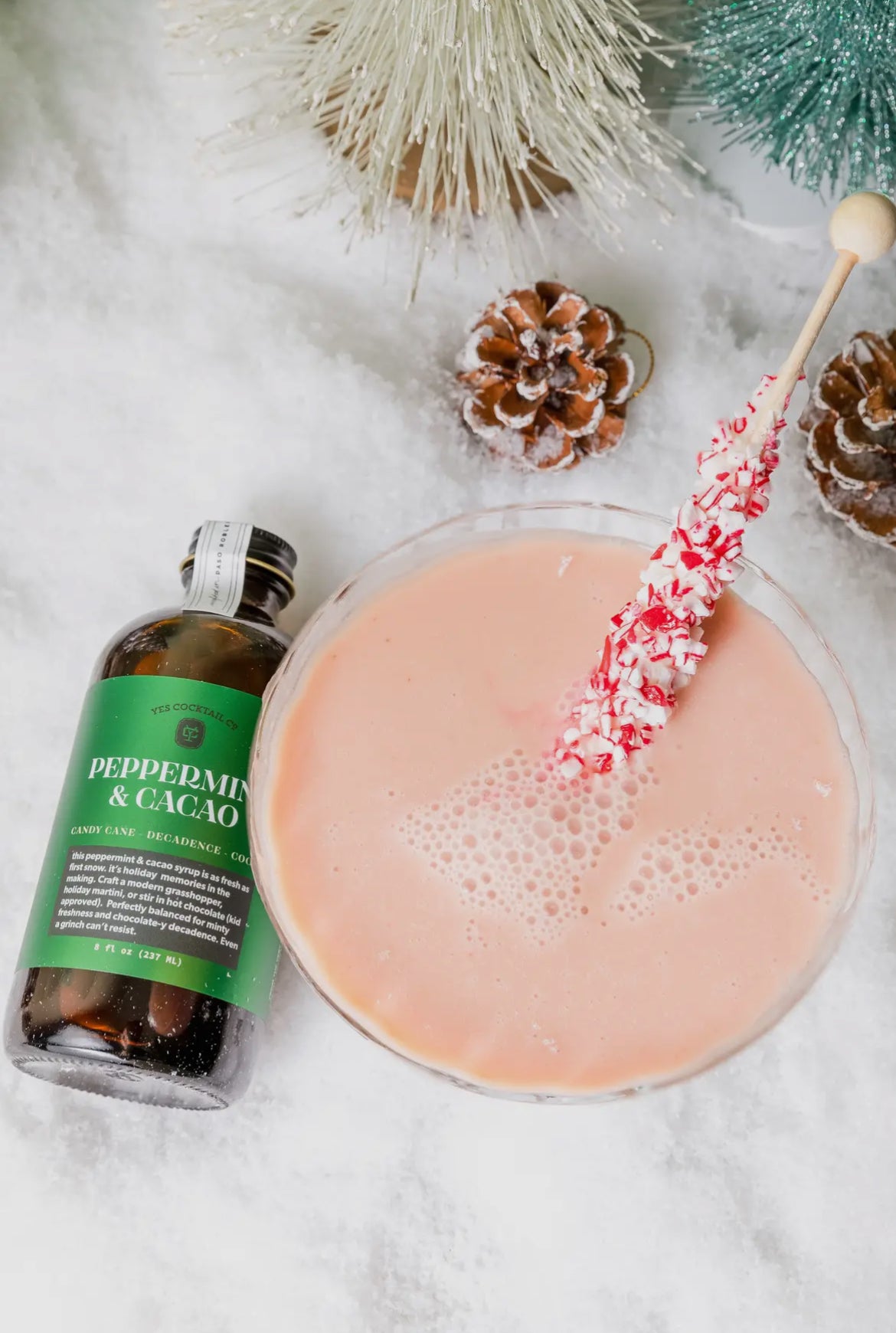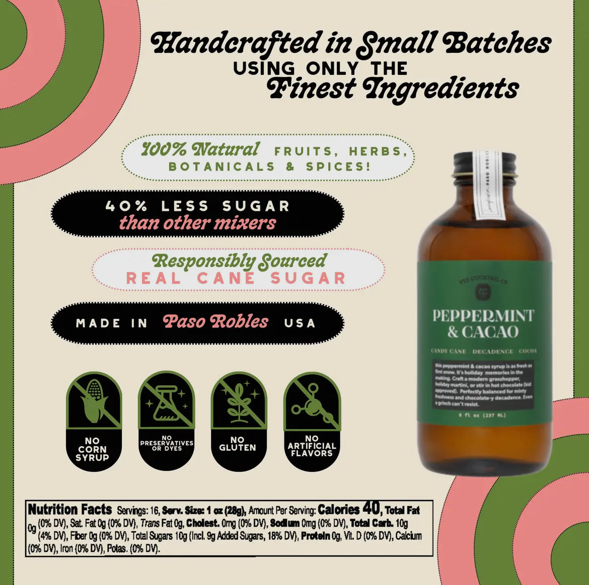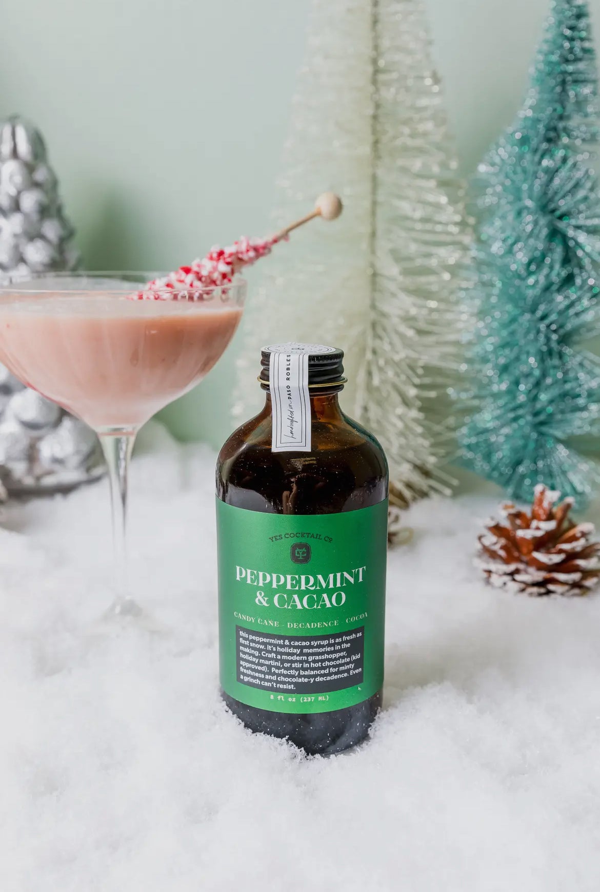 Yes Cocktail Co's Peppermint & Cacao Syrup blends natural peppermint and real cacao for a bold, balanced flavor that's equal parts refreshing and comforting. Like a classic peppermint mocha with a craft cocktail twist, it delivers smooth cocoa warmth with a crisp minty finish-perfect for the holiday season.